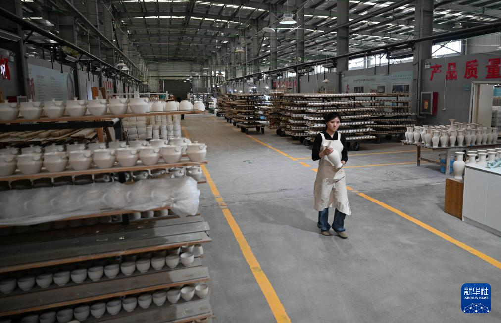 5月29日,宝丰县一家汝瓷企业的工人在搬运素胎。