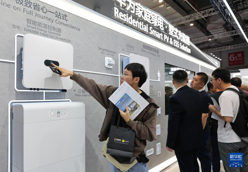 6月12日,参观者在一个家庭能源控制系统解决方案展示墙前驻足观看。