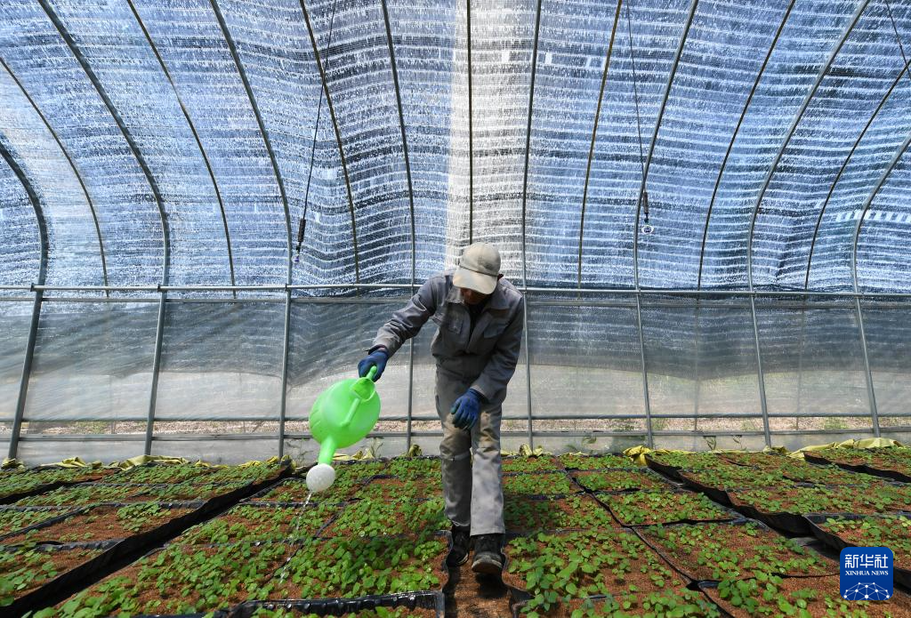 6月11日,德胜村村民在大棚内进行马铃薯苗期管理。目前,德胜村已建成300亩马铃薯微型薯育种园区和加工园区,建设育种大棚287个,每年可为村集体创收100余万元。