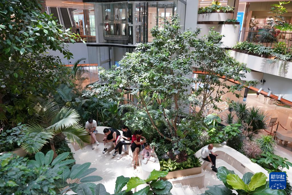 6月11日,人们在西安南飞鸿·乐荟中心休闲纳凉。