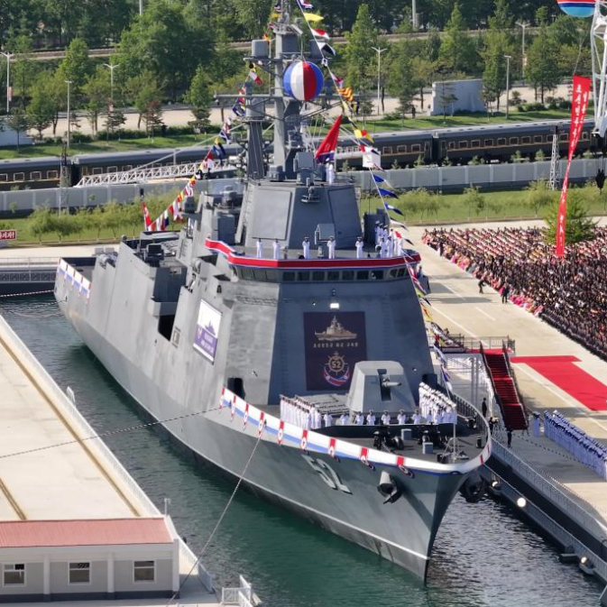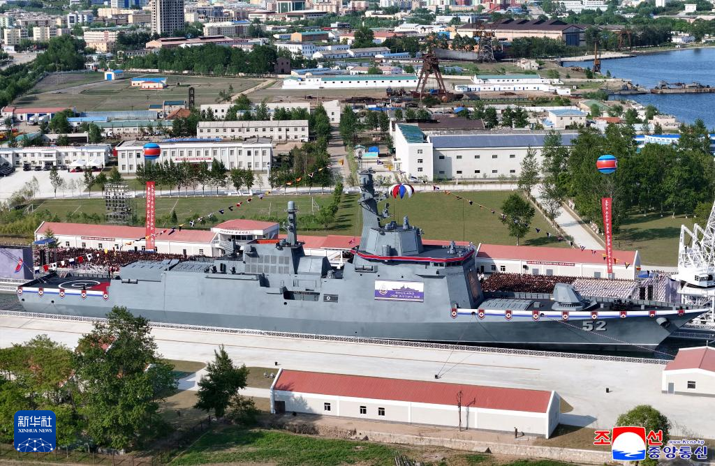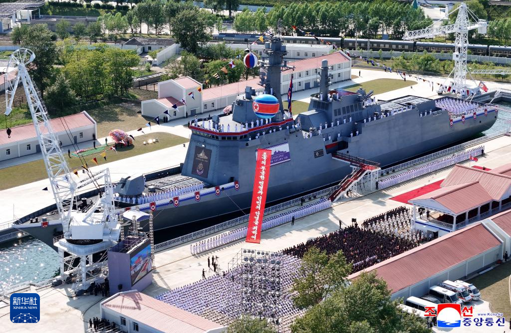 这是朝中社发布的朝鲜“崔贤”级二号舰下水仪式现场画面。