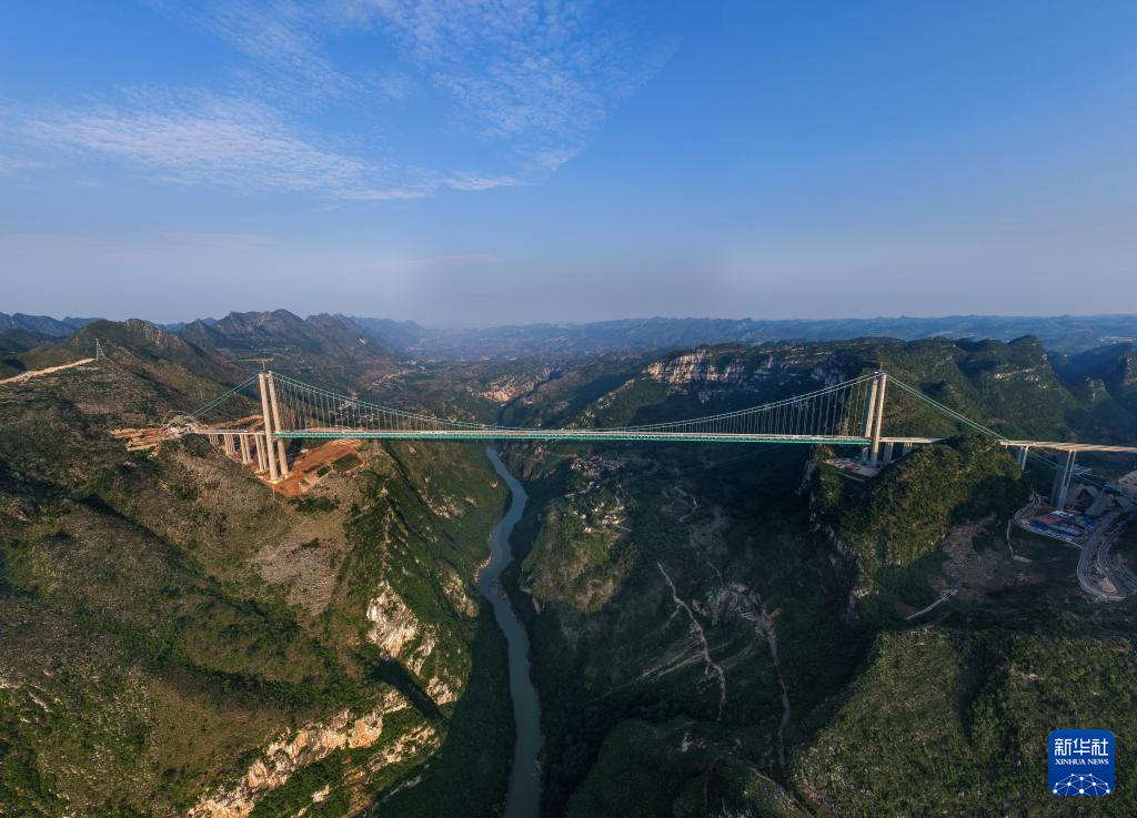 花江峡谷大桥是贵州六安高速公路的控制性工程,全长2890米、桥面距水面高625米,预计今年下半年建成。