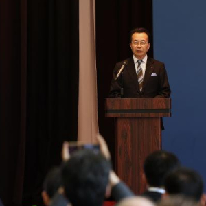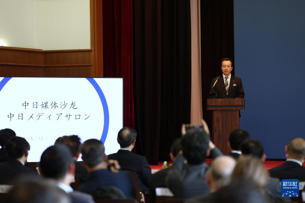 6月12日,在日本东京的中国驻日本大使馆,日本新闻协会会长中村史郎在“中日媒体沙龙”上致辞。