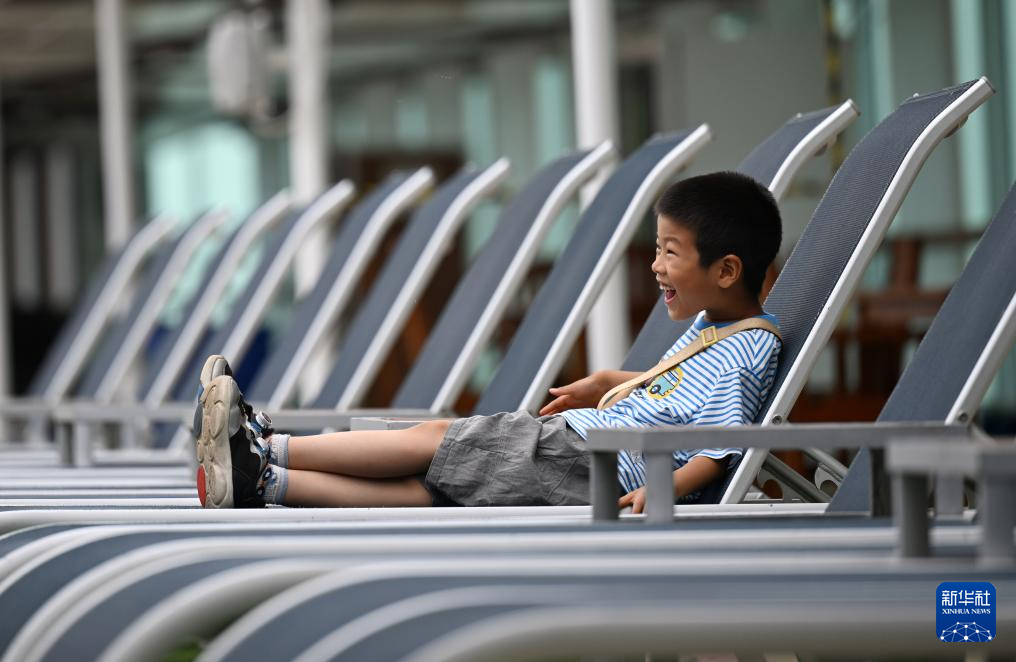 6月14日,游客在东方邮轮“梦想”号上休闲。