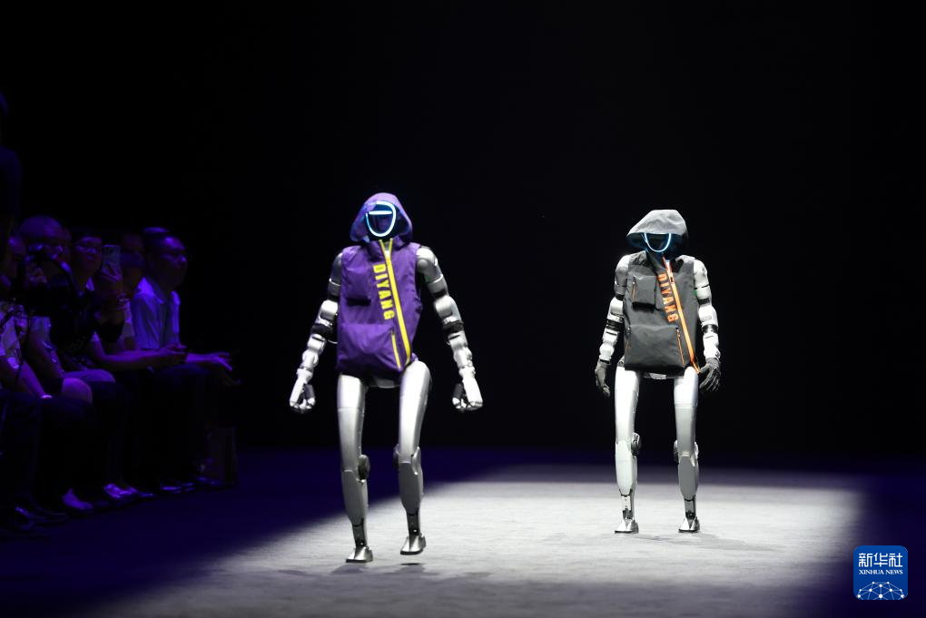 6月12日晚,机器人模特在天津时装秀上展示时装。