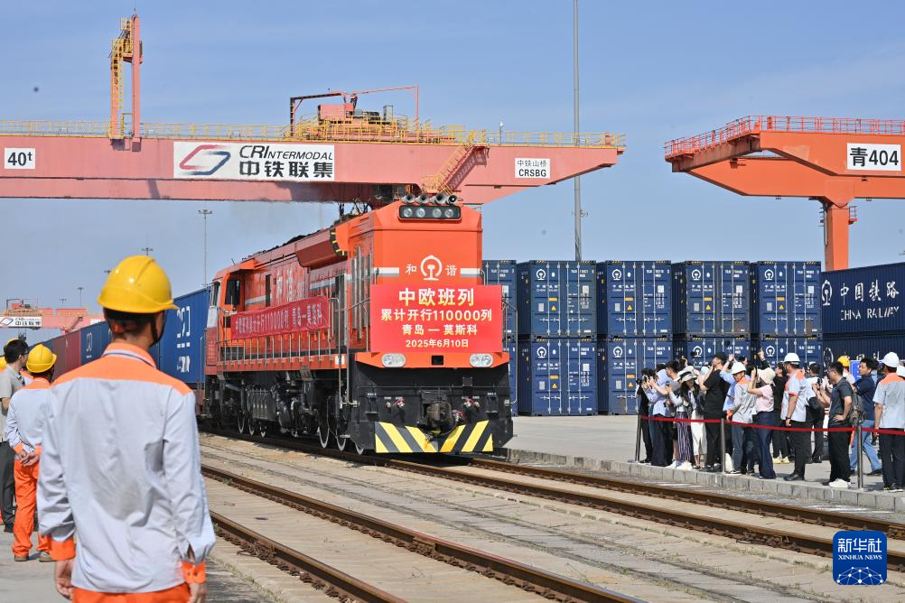 6月10日,由青岛开往莫斯科的75052次中欧班列从青岛胶州站开出,中欧班列累计开行11万列。