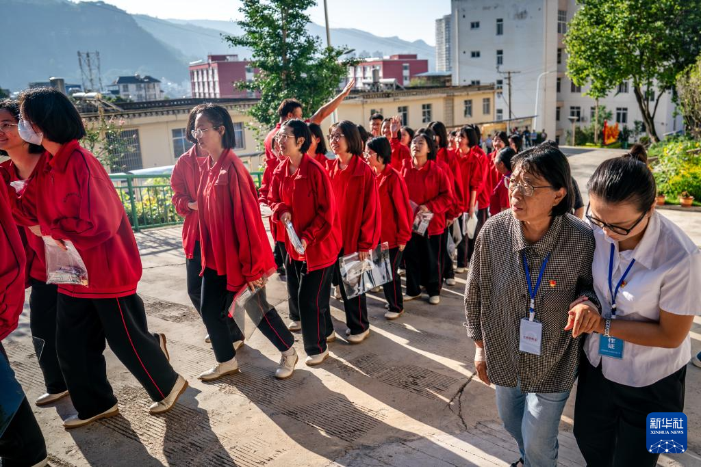 6月7日,张桂梅目送高三学生进入高考考场。自云南丽江华坪女子高中的学生2011年首次参加高考以来,张桂梅校长已连续送考15年,将两千多名学生送出大山。