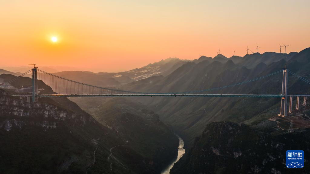 这是6月11日拍摄的贵州六安高速花江峡谷大桥(无人机照片)。6月12日,贵州花江峡谷大桥的猫道拆除完毕,标志着这座在建世界最高桥又完成一个重要施工节点,为9月底具备通车条件奠定坚实基础。
