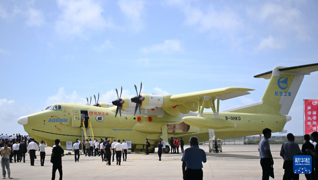 6月11日,珠海中航通飞华南飞机工业有限公司现场展示的AG600飞机。当日,我国完全自主研制的大型水陆两栖飞机AG600“鲲龙”在广东珠海获颁中国民航局生产许可证,标志着AG600飞机正式迈入批量生产阶段。