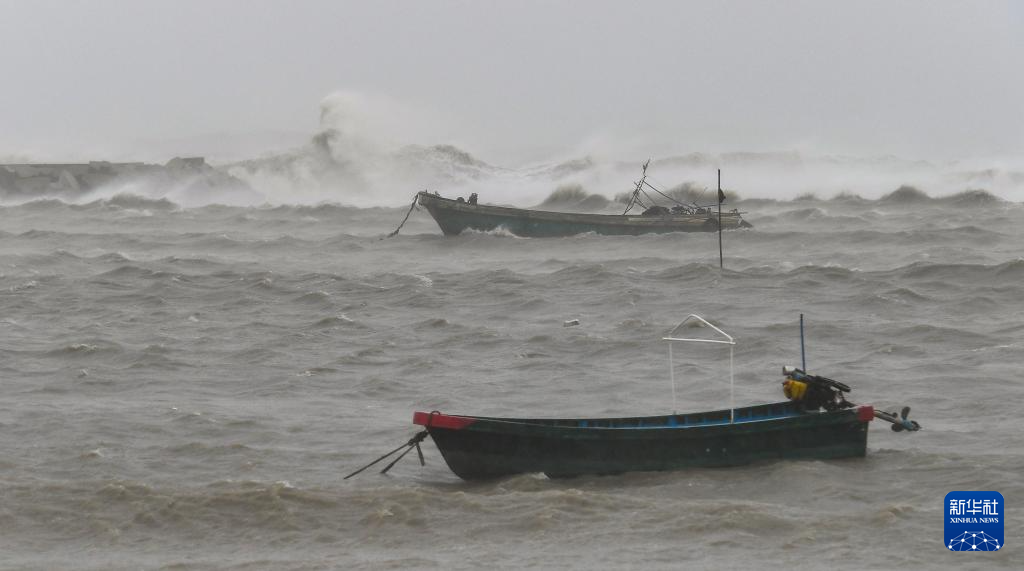6月13日,渔船在海南省乐东黎族自治县莺歌海镇亲水广场附近海域停泊避风。