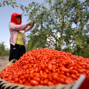 近日,宁夏头茬枸杞进入采摘收获季。6月15日,“宁夏枸杞开园节”在位于贺兰山脚下的百瑞源殷红子熟枸杞庄园开幕,采摘工忙碌在红果满枝头的枸杞地里。
