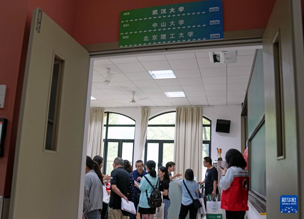 6月15日,考生(右)向武汉大学的招生老师咨询。