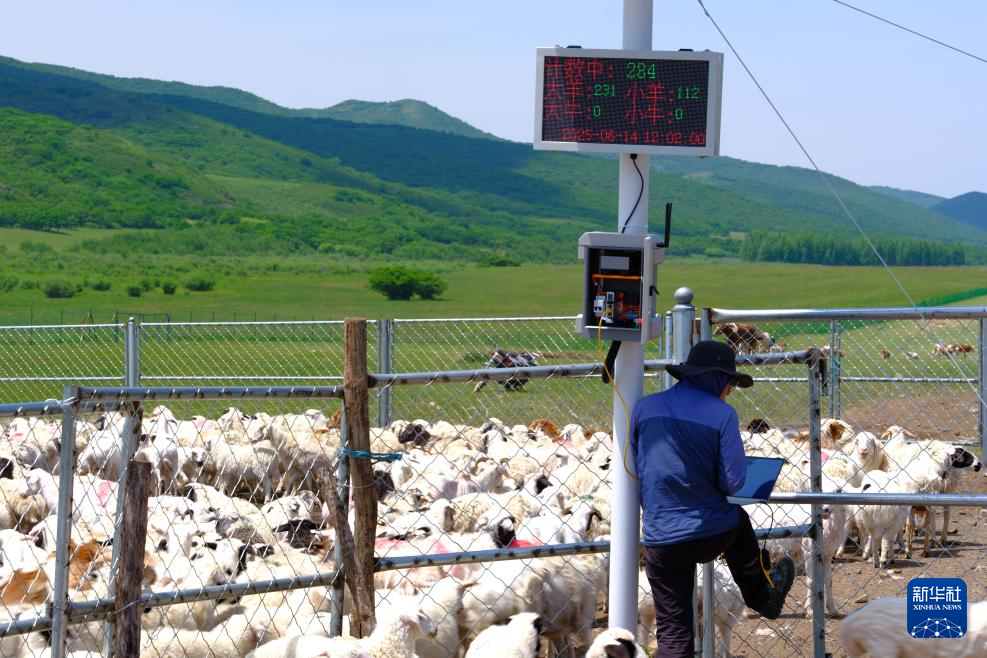 6月14日,在内蒙古高格斯台罕乌拉国家级自然保护区管理局敦都乌苏管护站,工作人员在清点进入保护区的牲畜数量。