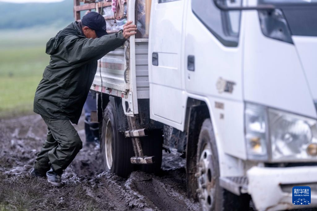 “以前要走8天,现在3天就能到。”彩恩朝格图说。但缩短的时间并未减轻这份辛苦。途中阴雨连绵,浸透了他的衬衫。“下雨才好呢”,他抹了把脸笑道,“让草‘喝饱水’,今年长得高高的,牛羊吃得胖胖的。”