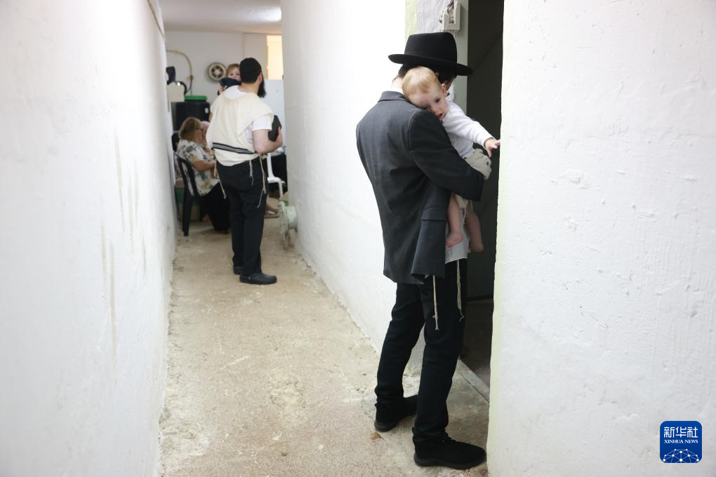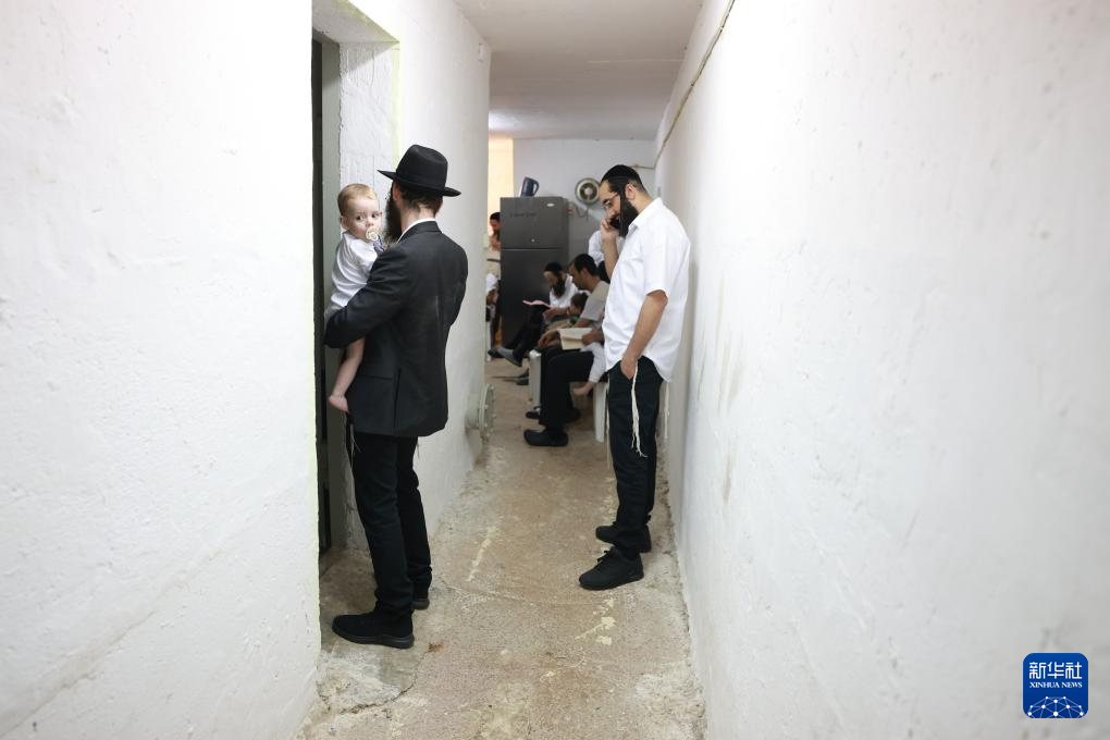 6月15日,人们在以色列北部塞费德的防空设施中避险。