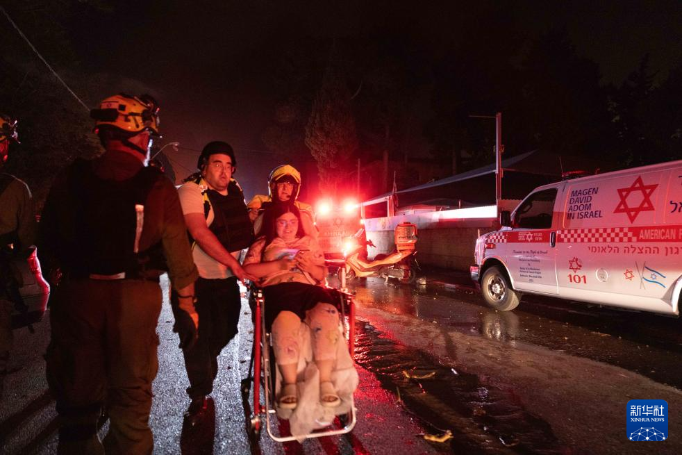 6月15日,在以色列北部城市海法,一名伤员从导弹袭击现场被转移。