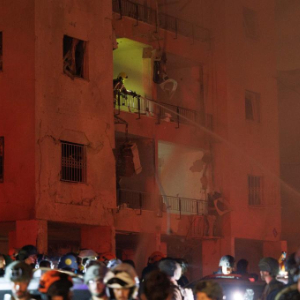 6月15日,在以色列北部城市海法,应急救援人员在导弹袭击现场工作。