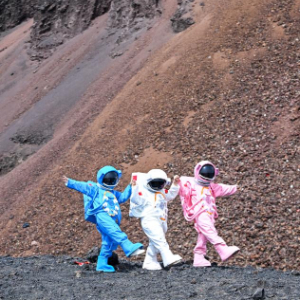 6月17日,身着宇航服装扮的游客在乌兰哈达火山群6号火山游玩。