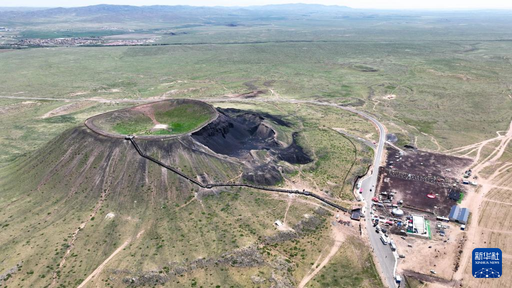 6月17日拍摄的内蒙古乌兰察布市察哈尔右翼后旗内蒙古乌兰哈达火山地质公园6号火山(无人机照片)。
