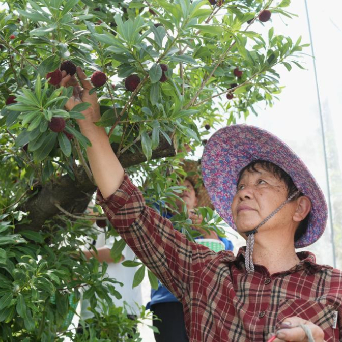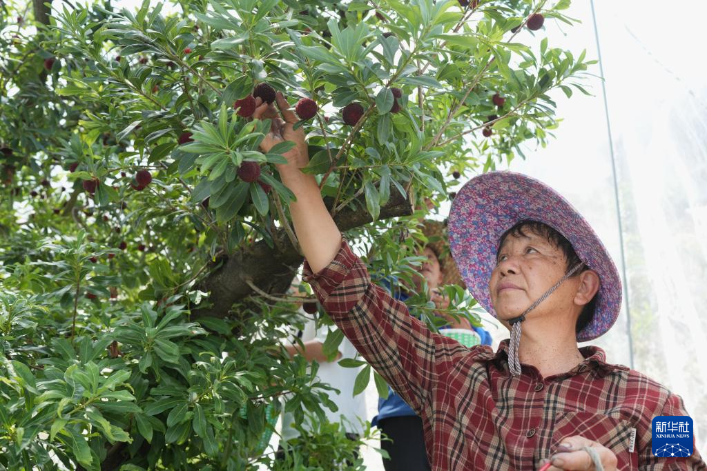 近日,浙江省台州市黄岩区东魁杨梅进入集中采摘期。黄岩全区目前东魁杨梅种植面积5.6万亩,年产量3.9万吨,产值4.7亿元。东魁杨梅发源于黄岩东魁村,以果大味甜著称,作为优质杨梅品种已被引种至全国各地。