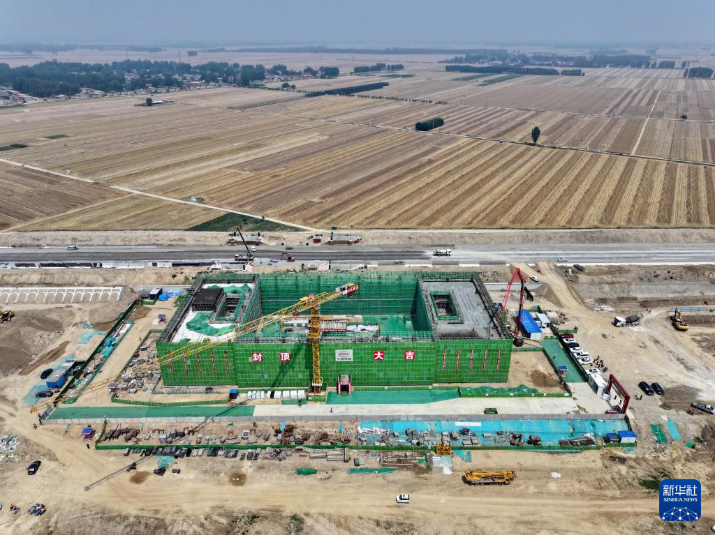 雄忻高铁望都北站建设现场(6月18日摄,无人机照片)。