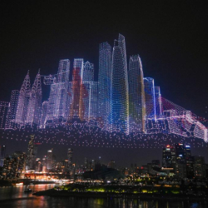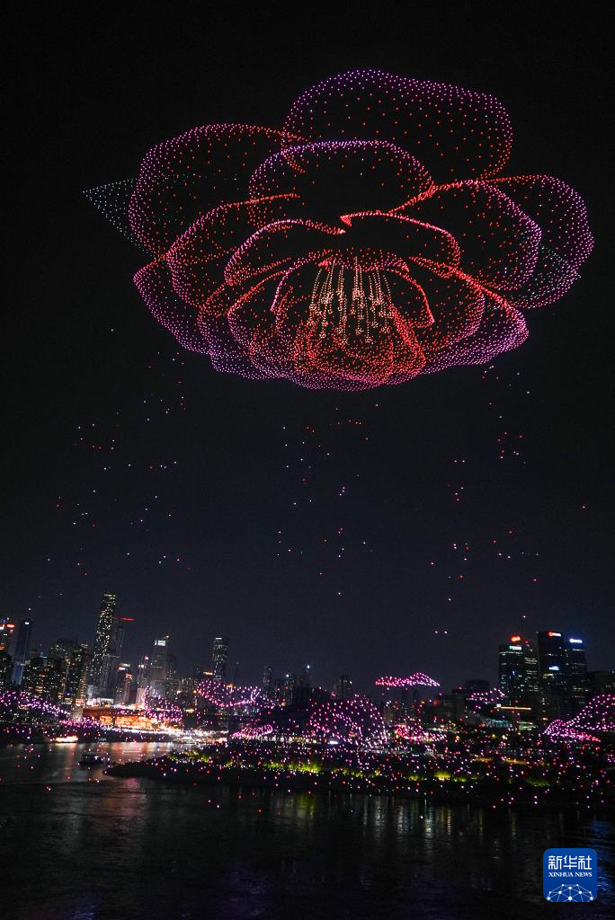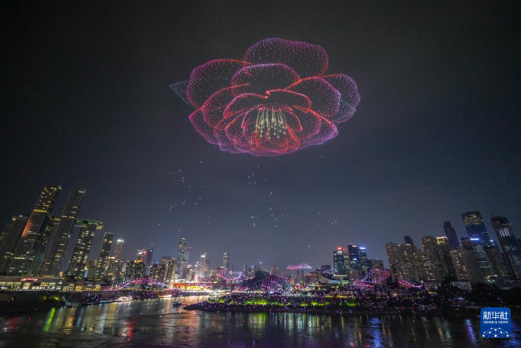 6月17日晚,重庆举行超大规模无人机灯光秀表演,由11787架无人机组成的双编队飞行从重庆市南岸区弹子石广场起飞,创造了“最多无人机组成的空中图案”吉尼斯世界纪录。