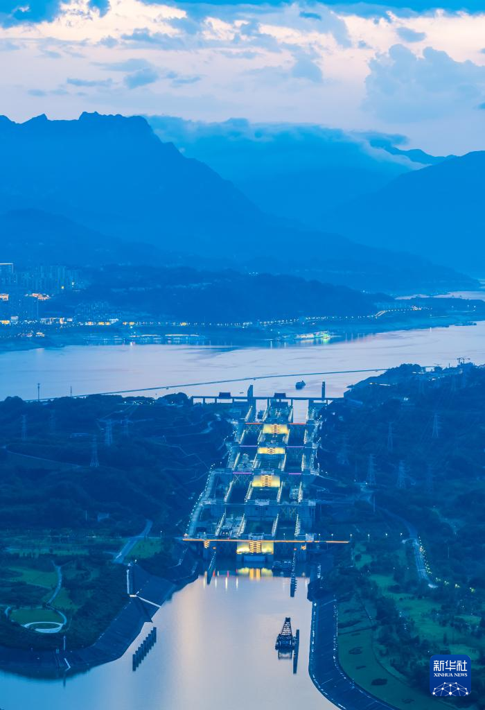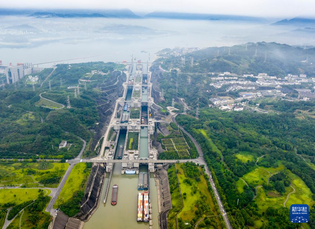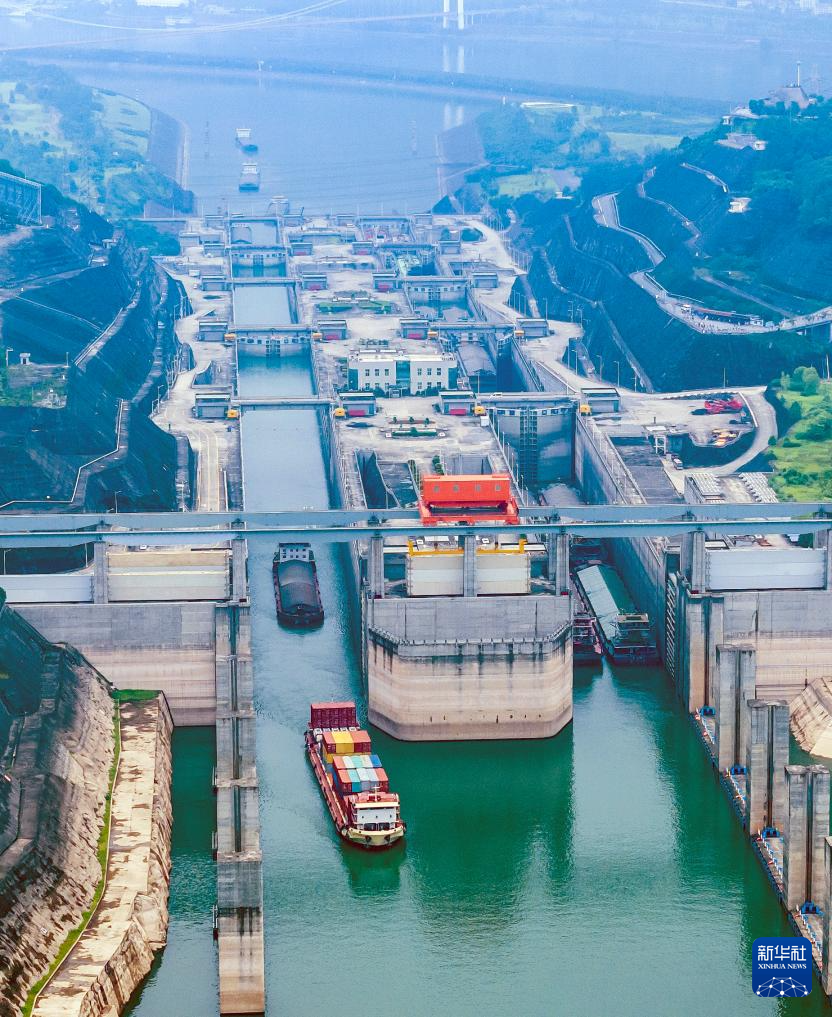6月17日,在湖北宜昌,船舶有序通过三峡双线五级船闸。