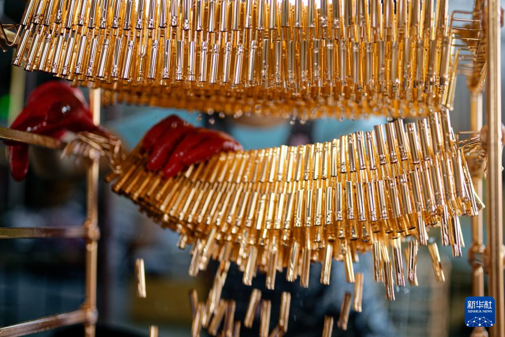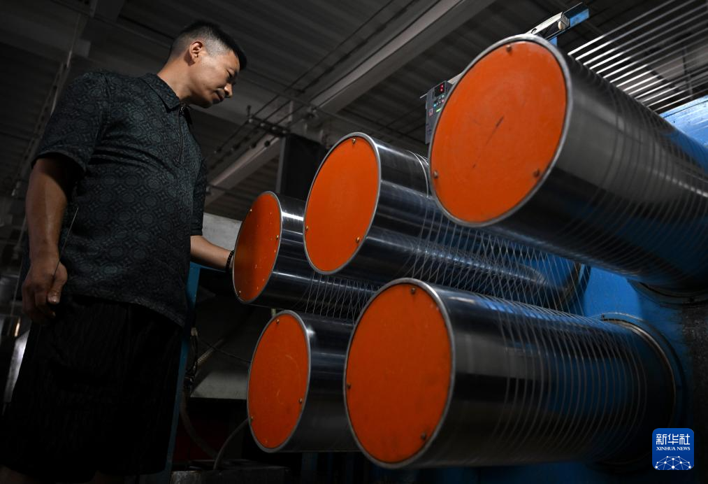 6月17日,工人在河南省鹿邑县中俊实业有限公司的厂房内对用于连接刷毛和刷柄的铝管进行氧化处理。