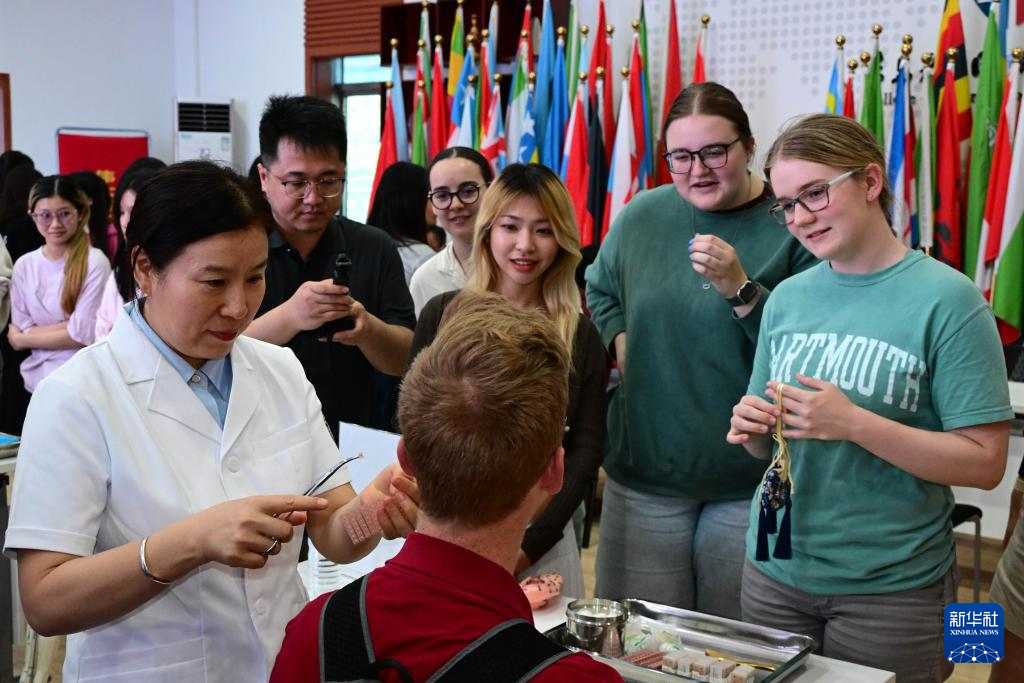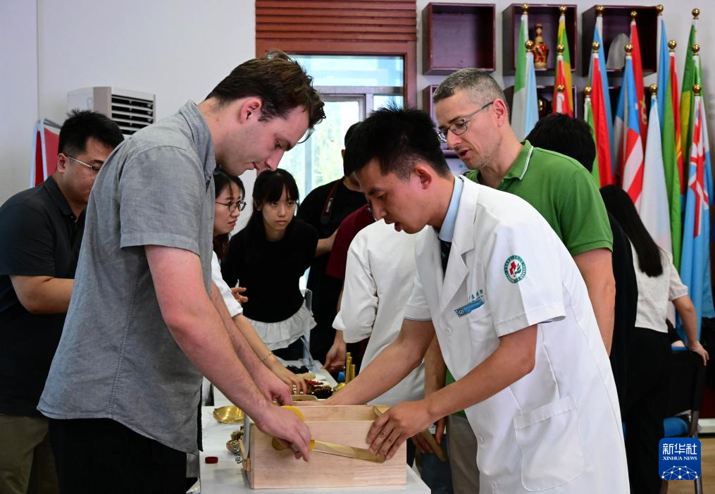当日,青岛大学国际教育学院“中医药文化文明互鉴课堂”开课,通过中医药知识课堂教学、中医技法体验等形式,让来华学习的国际学生们学习和感受传统中医药文化。