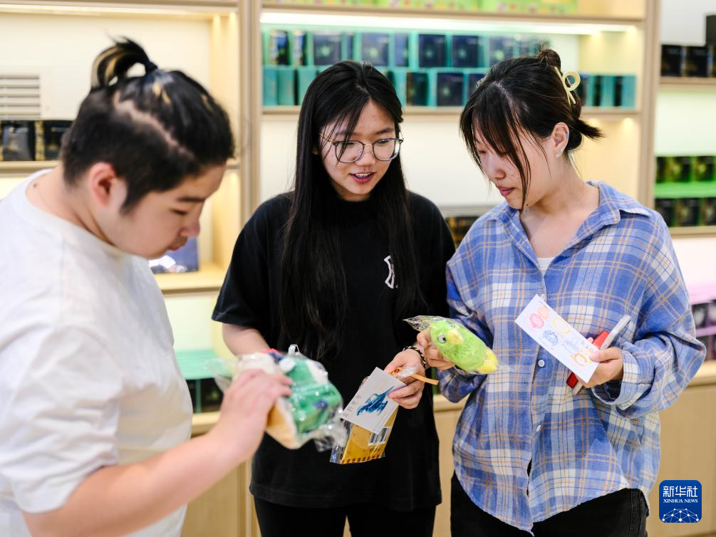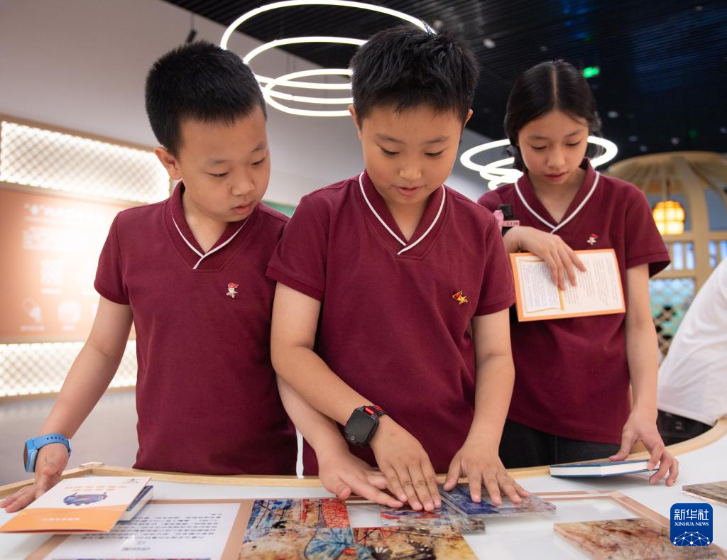 6月20日,小朋友们在内蒙古博物院体验文物拼图。