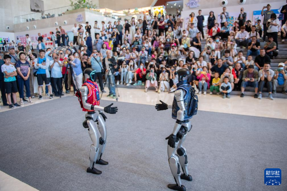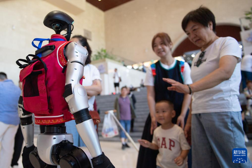 6月20日,在内蒙古博物院,观众与智能导览机器人互动。
