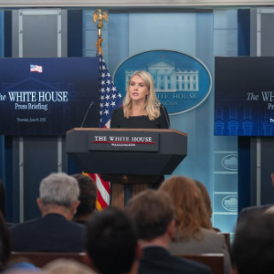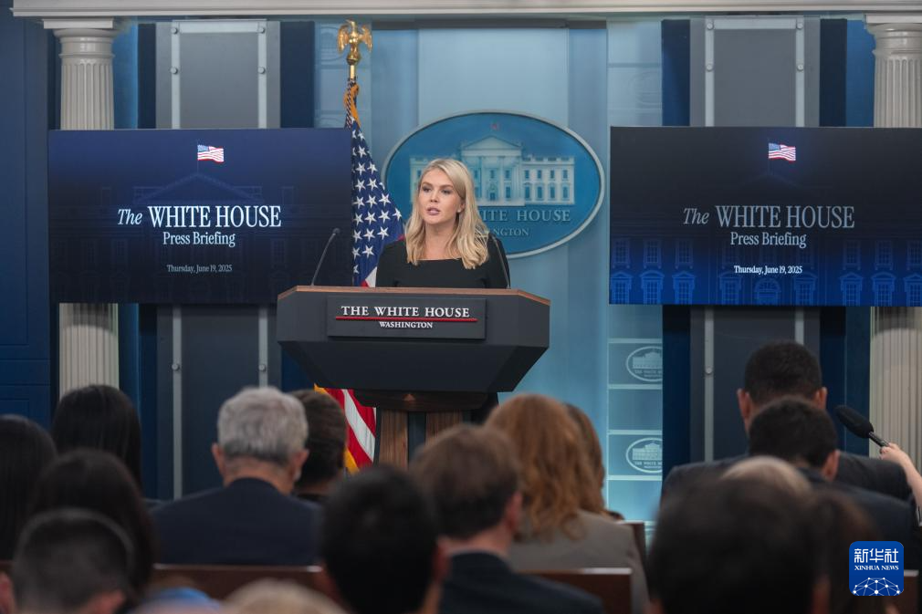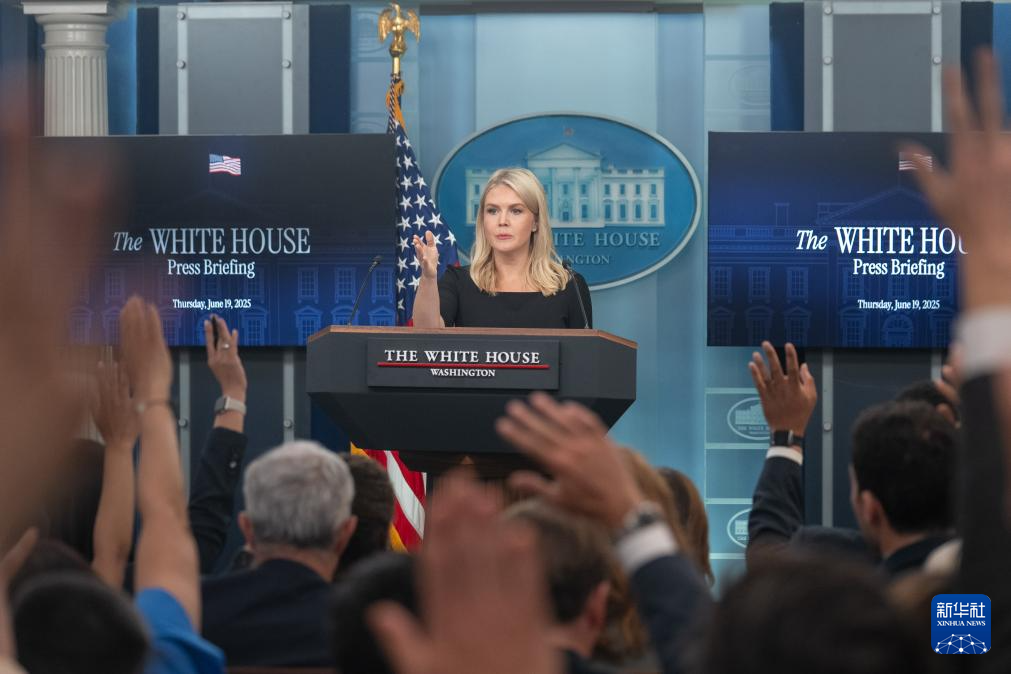 6月19日,在美国华盛顿白宫,白宫新闻秘书卡罗琳·莱维特出席记者会。