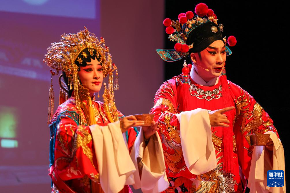 6月19日,在摩洛哥北部城市梅克内斯,广州粤剧院的演员表演粤剧选段。