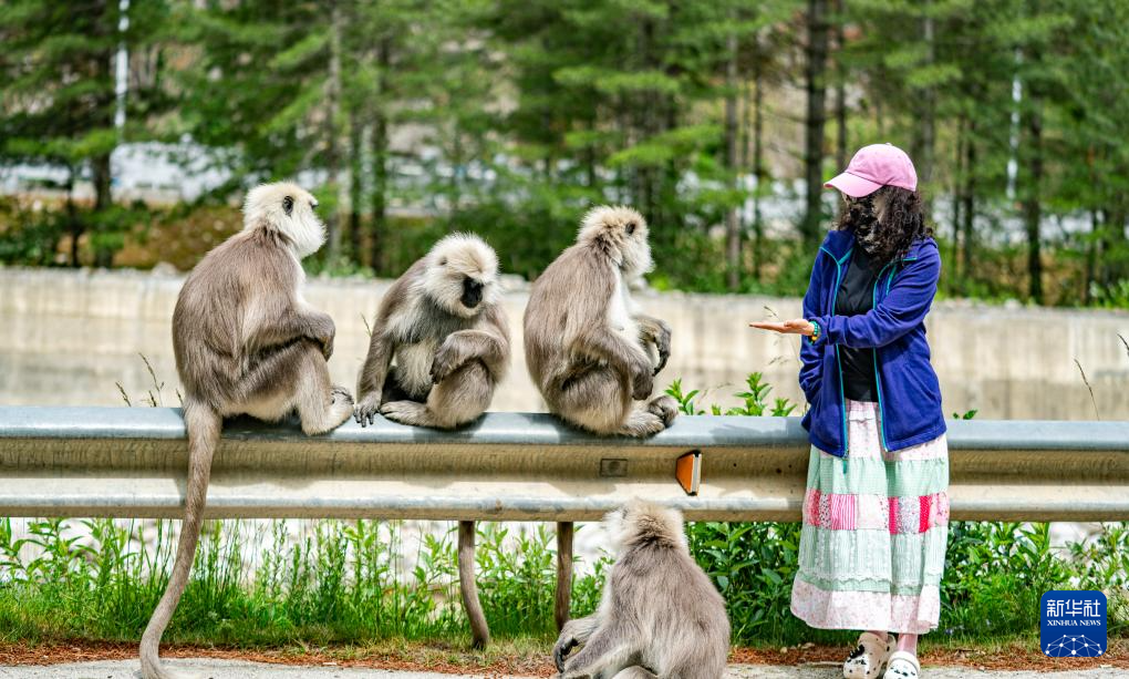 近年来,随着西藏日喀则市亚东县生态环境治理水平持续提升,生态环境日益向好。长尾叶猴时常下山与居民、游客亲密互动,已成为一道独特的风景线。