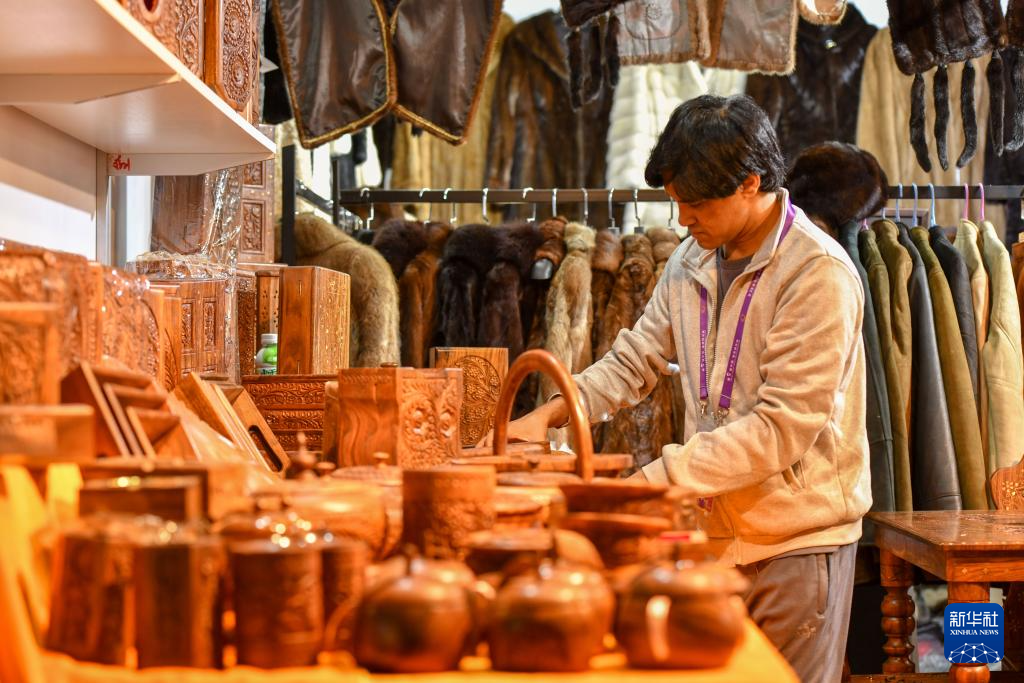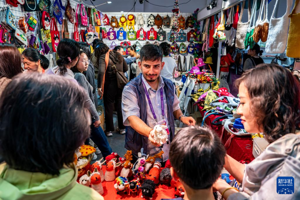 6月21日,第9届中国—南亚博览会南亚馆尼泊尔展区的参展商向观众推介特色商品。