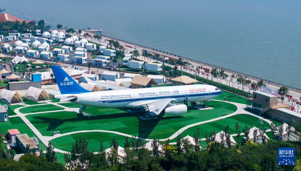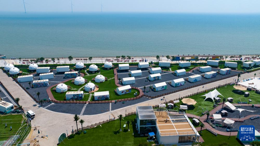这是6月21日拍摄的天津东疆亲海公园的一处临海露营基地(无人机照片)。