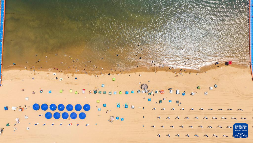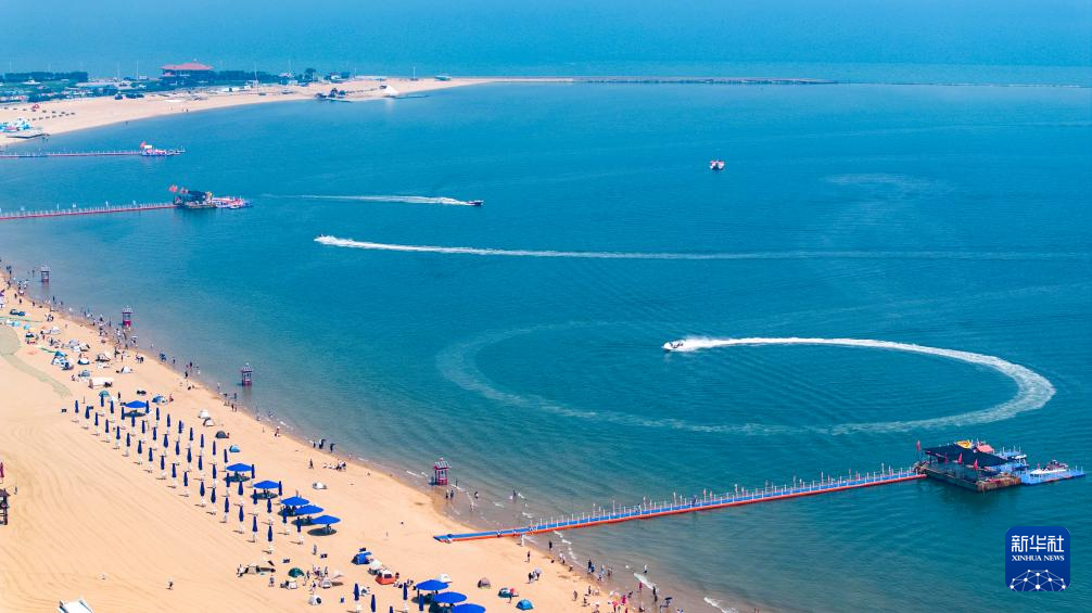 这是6月21日拍摄的天津东疆湾沙滩景区一景(无人机照片)。