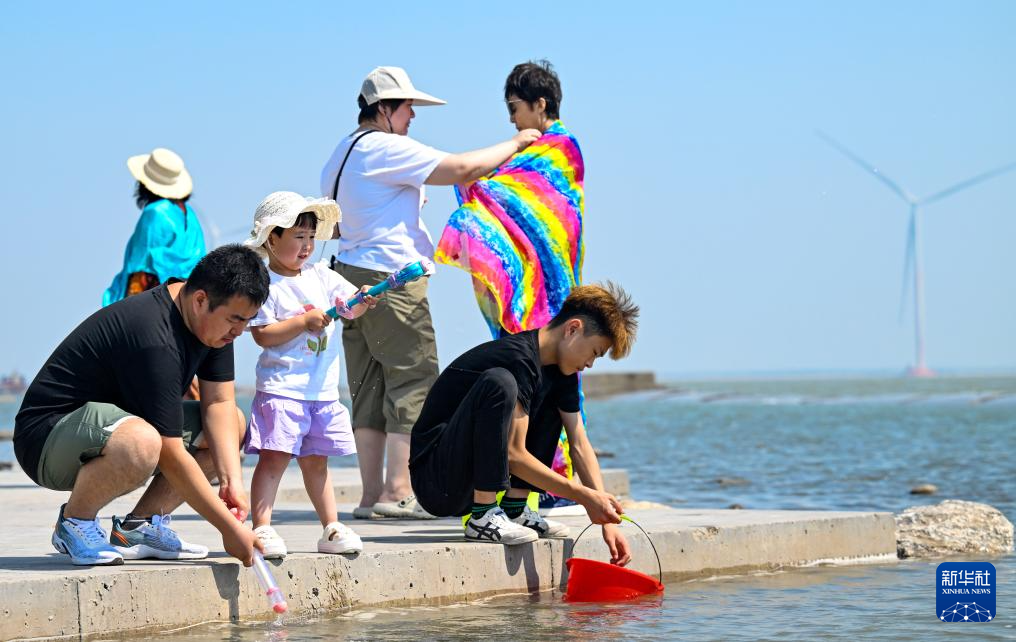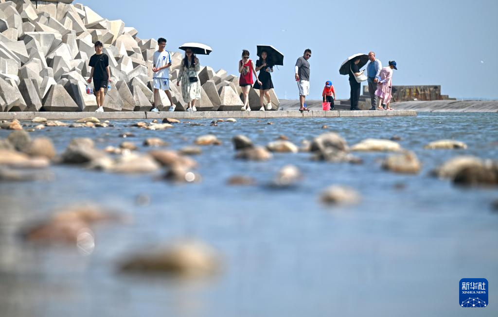 6月21日,游客在天津东疆亲海公园游玩。