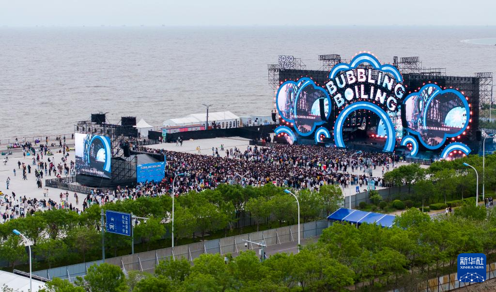 这是5月3日在天津东疆亲海音乐广场举行的一场音乐节的现场(无人机照片)。