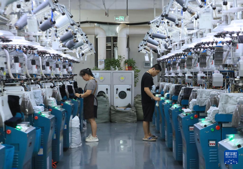 2025年6月20日,在辽宁木色袜业有限公司,工人在车间生产袜子。