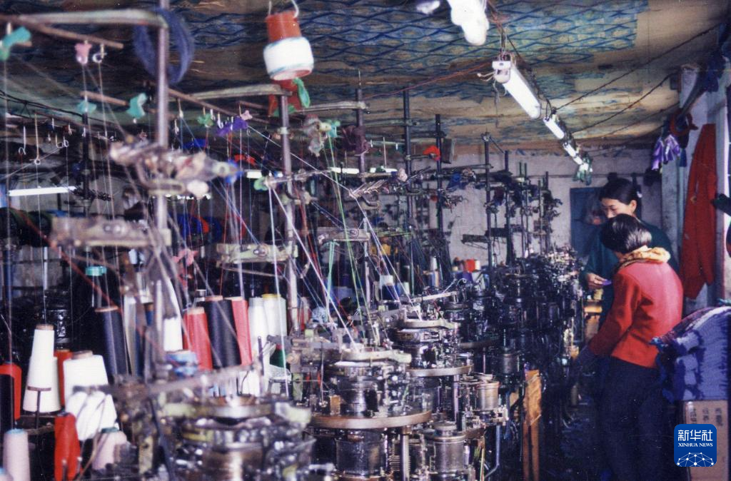 1992年1月8日拍摄的小北河镇一家袜厂生产车间。