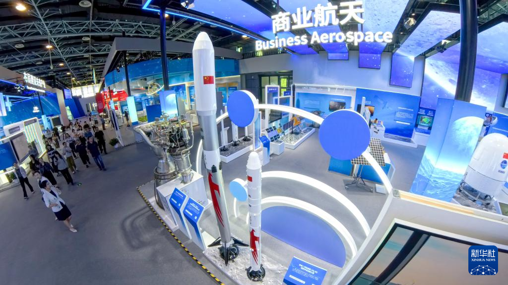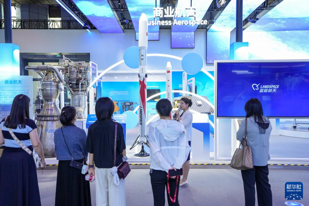 参观者在商业航天区域了解展出的北京商业航天企业的产品(6月20日摄)。