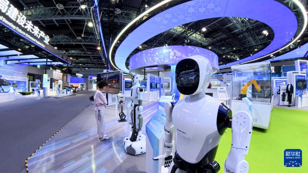 参观者在中关村展示中心参观展出的人形机器人产品(6月20日摄)。