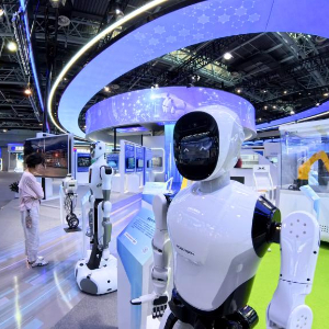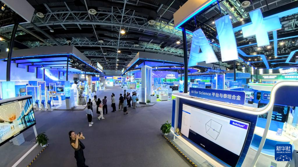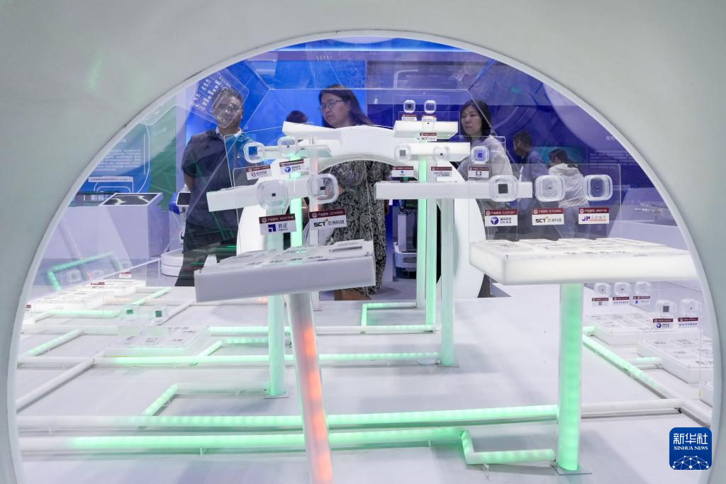 参观者在中关村展示中心“人工智能+”展示区域参观(6月20日摄)。