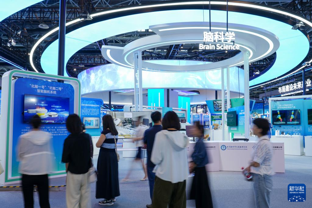 参观者在中关村展示中心参观了解“北脑一号”和“北脑二号”智能脑机系统展示(6月20日摄)。