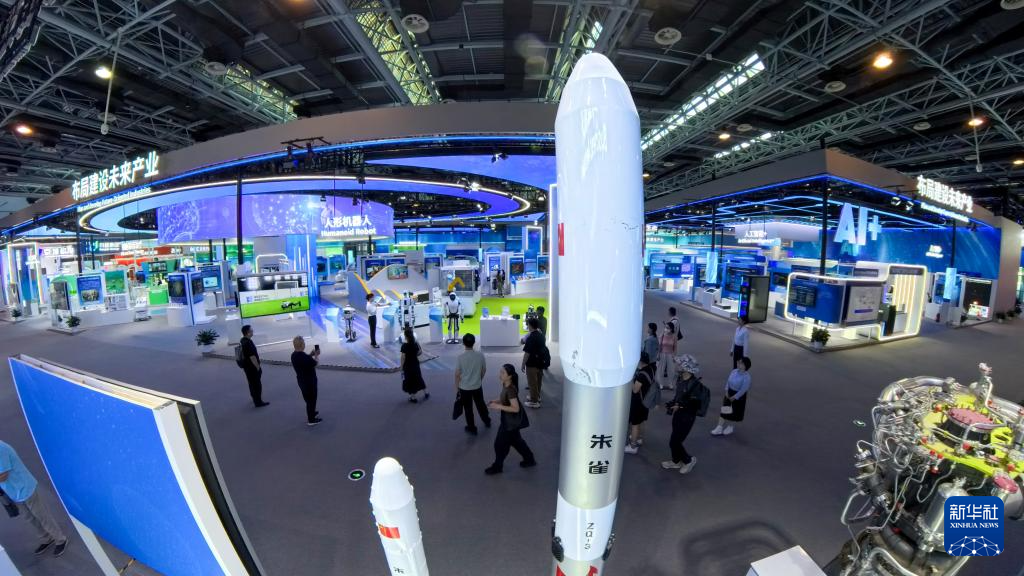 参观者在中关村展示中心商业航天展示区域了解展出的北京商业航天企业的产品(6月20日摄)。