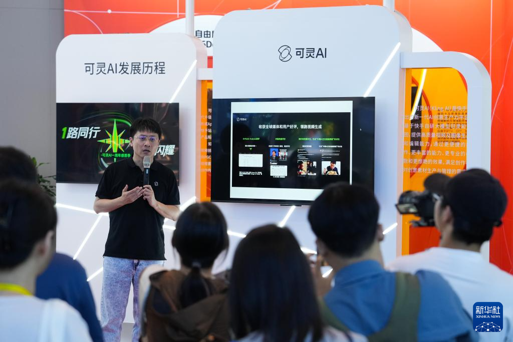 6月20日,北京快手科技有限公司副总裁、可灵AI技术负责人张迪在北京中关村国家自主创新示范区展示中心介绍产品。