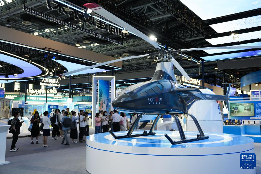 这是6月20日在北京中关村国家自主创新示范区展示中心拍摄的展出的航景创新FWH-1500无人直升机。