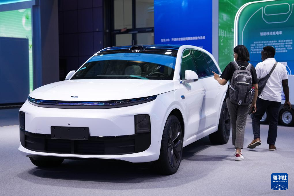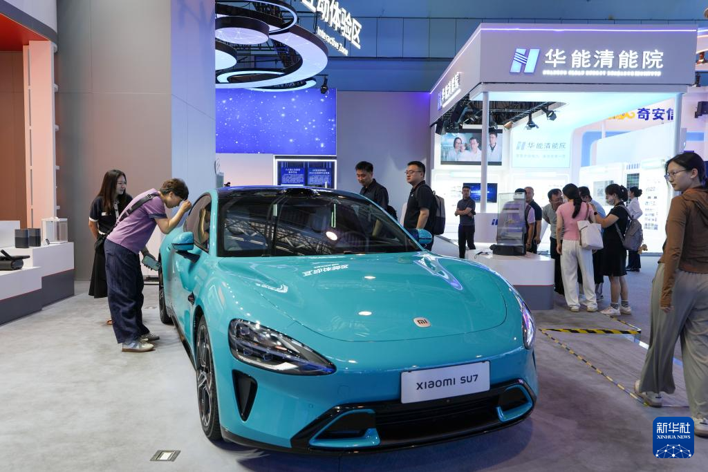 参观者在中关村展示中心参观展出的小米SU7电动汽车(6月20日摄)。