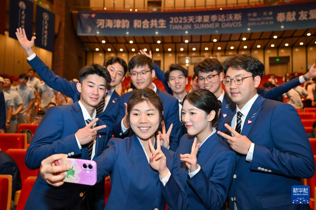 当日,世界经济论坛第十六届新领军者年会(2025夏季达沃斯论坛)青年志愿者上岗仪式在天津大学北洋园校区举行。